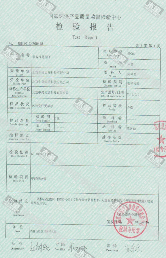 木童觸媒凈化因子效果檢驗(yàn)報(bào)告