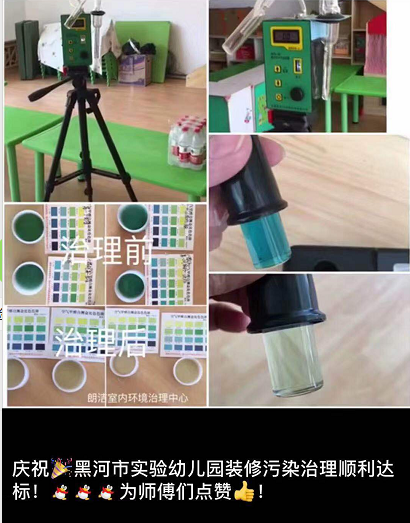慶祝黑河市實驗幼兒園裝修污染治理除甲醛順利達標(biāo)